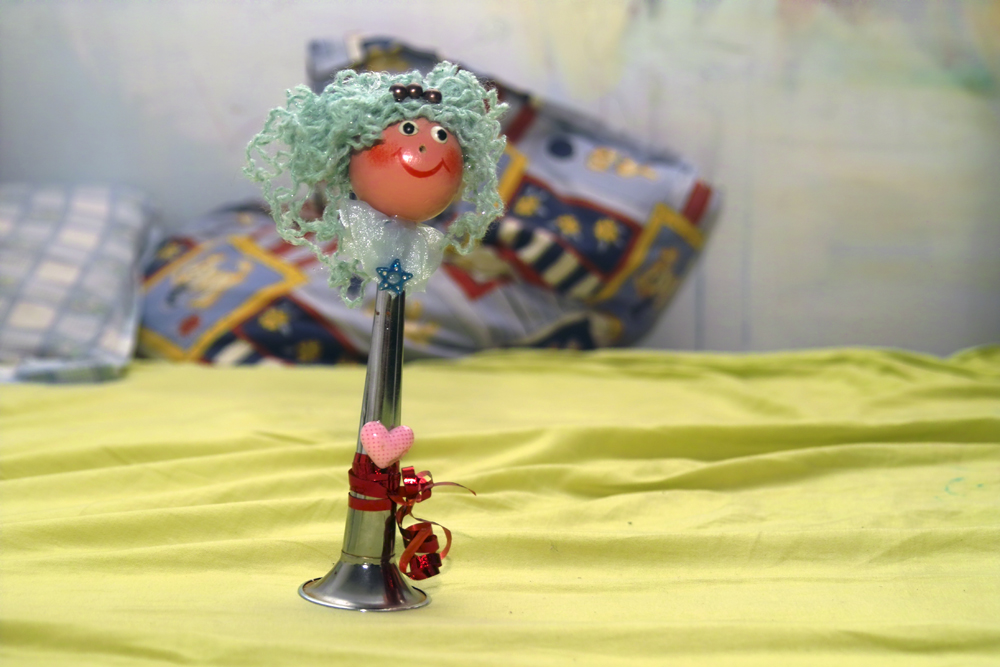Коледното ангелче е направено от стара велосипедна тромба.