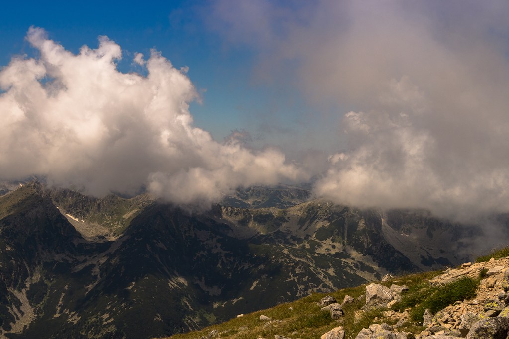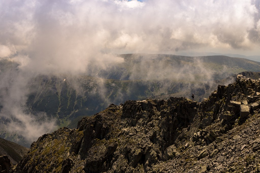 От връх Мусала към хижа Заврачица. Значително по-добре. Няма никой около нас.