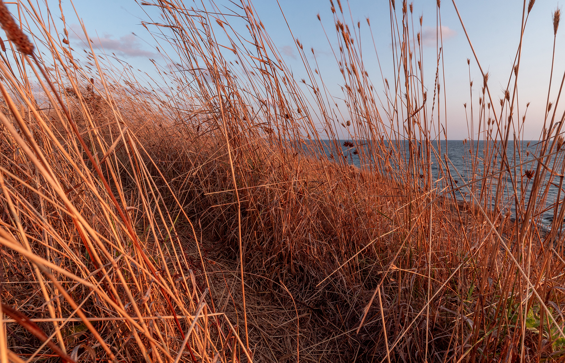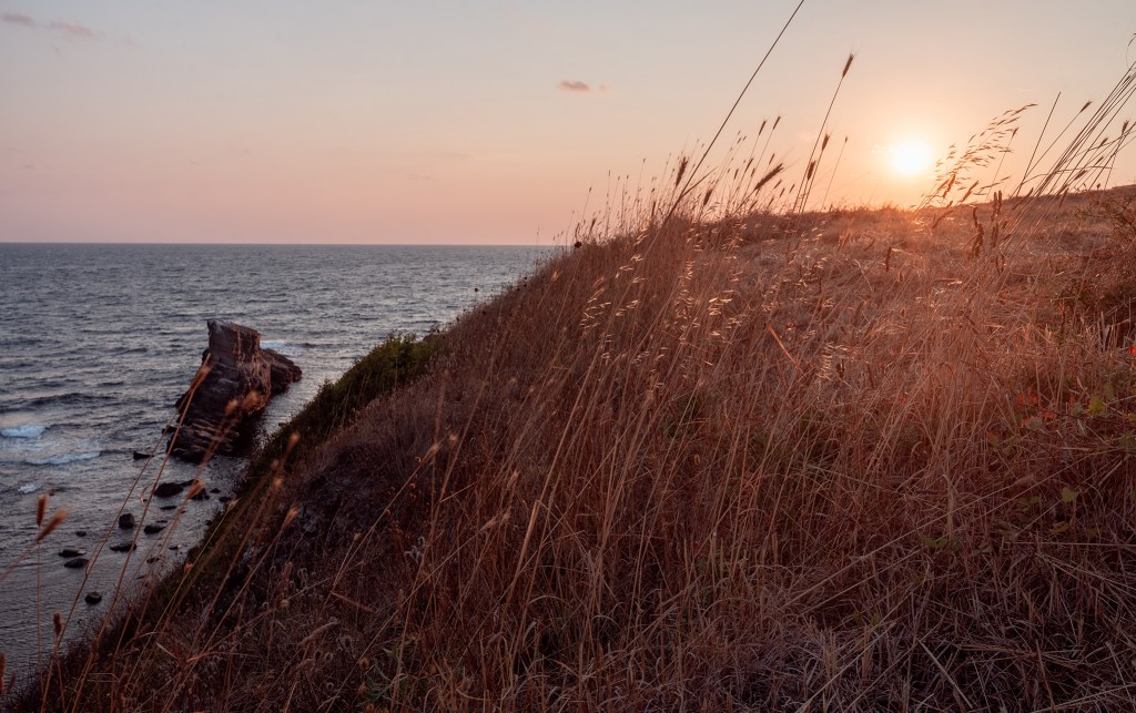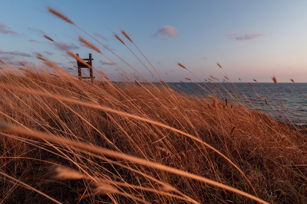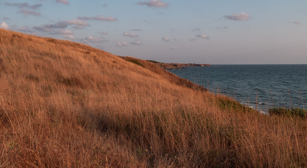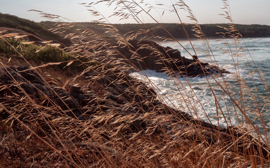 Вятърът заделя малко от вълните на морето и ги дава само на тревата…