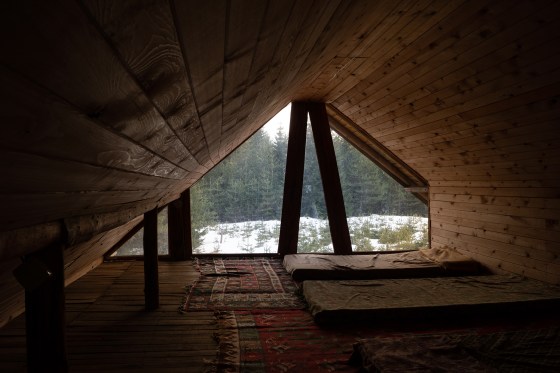 Много хубав прозорец, който се спуска от тавана до пода. Да, точно върху постелята до този прозорец. Сгушен в топлия чувал, а на вън – едри, бавни снежинки. Какво повече? Заслон Велийца.